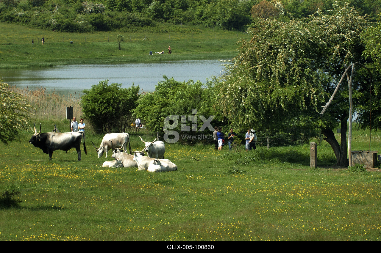 Szürkemarhák és turisták a tihanyi Belső-tónál