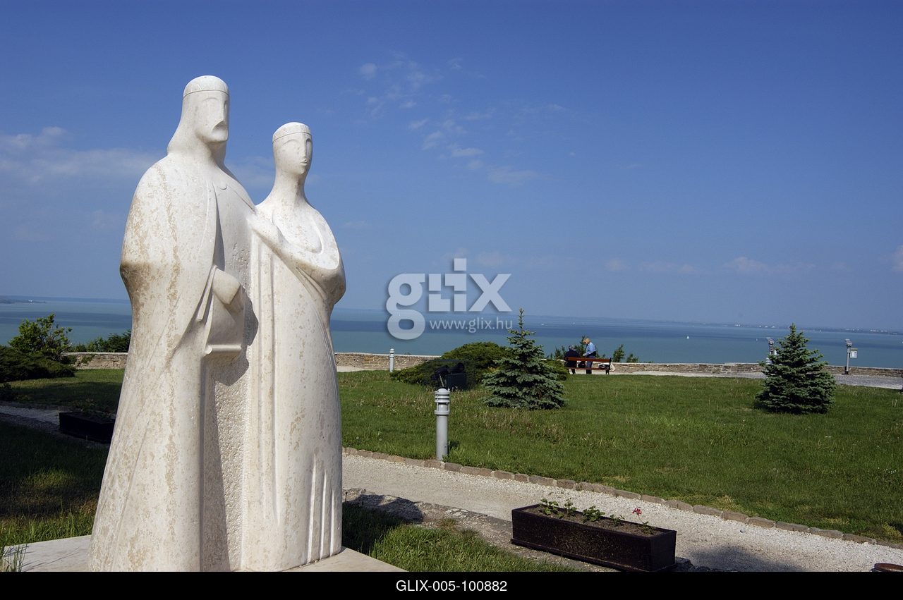 I. András és felesége, Anasztázia királyné ukrán hercegnő szobra Tihanyban.