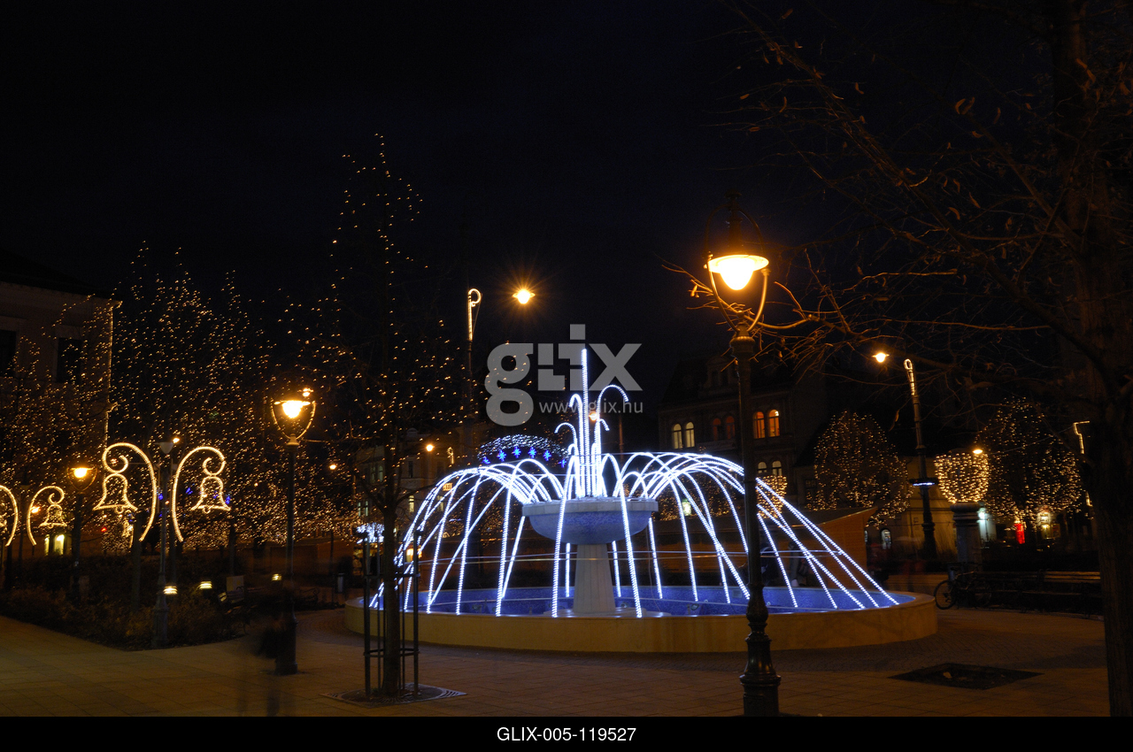 Debrecen belvárosa karácsonyi díszkivilágításban.