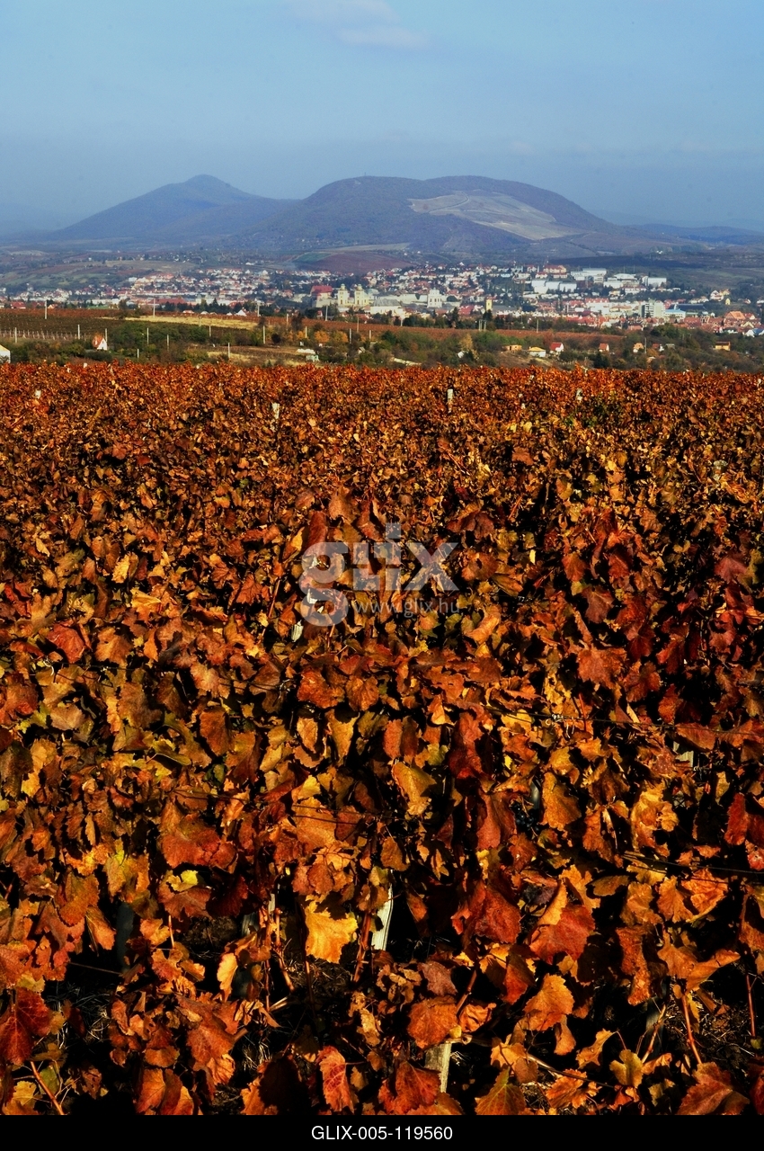 Szőlőültetvény Eger határában, háttérben a Bükk.