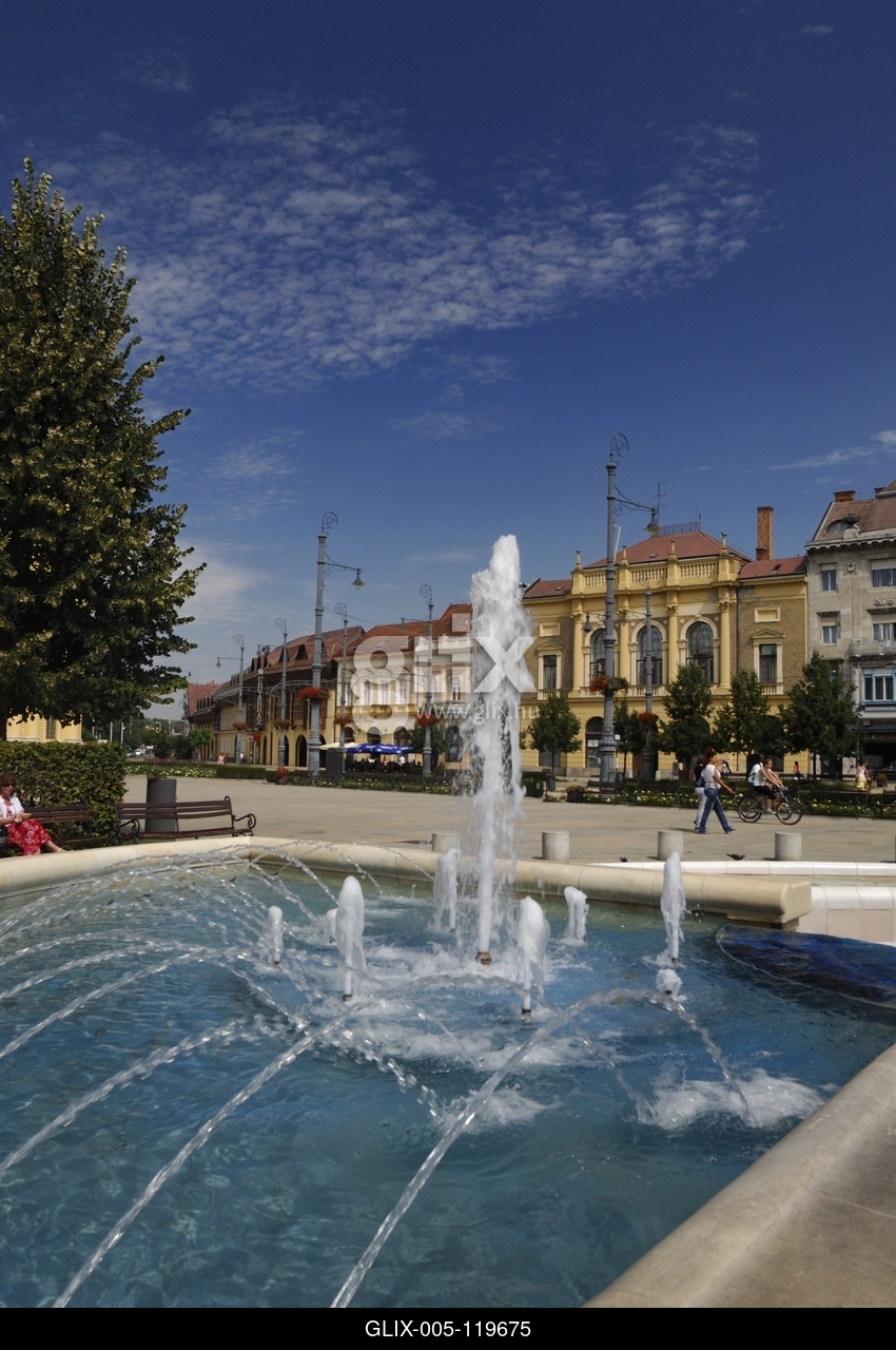 Debrecen, a Millenniumi szökőkút és a Református Nagytemplom