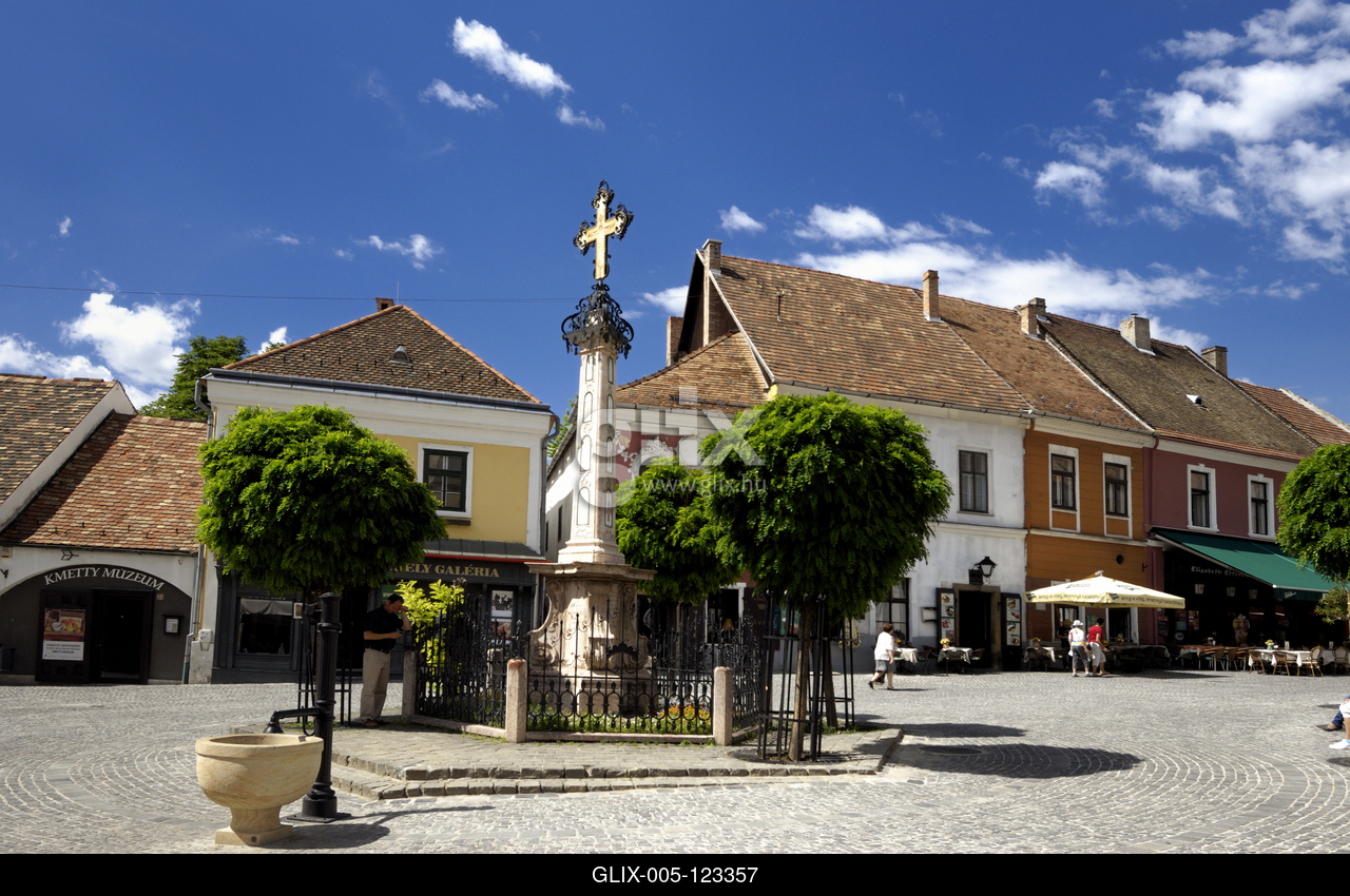 A műemlék barokk, illetve copf stílusú házakkal szegélyezett Fő tér. Középen a késő rokokó stílusú Kalmár-kereszt.