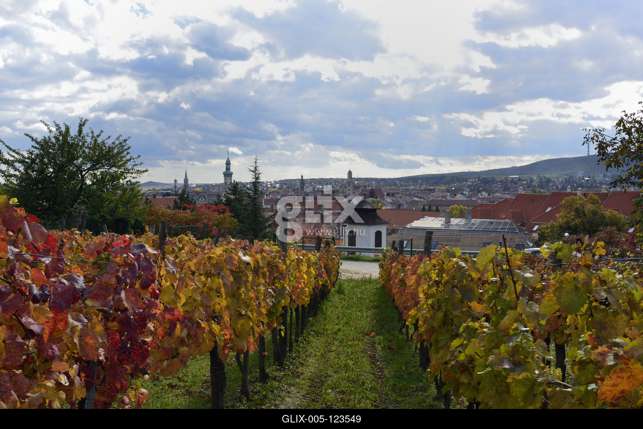 Soproni szőlőtőkék a Koronázódombon. Háttérben a belváros.