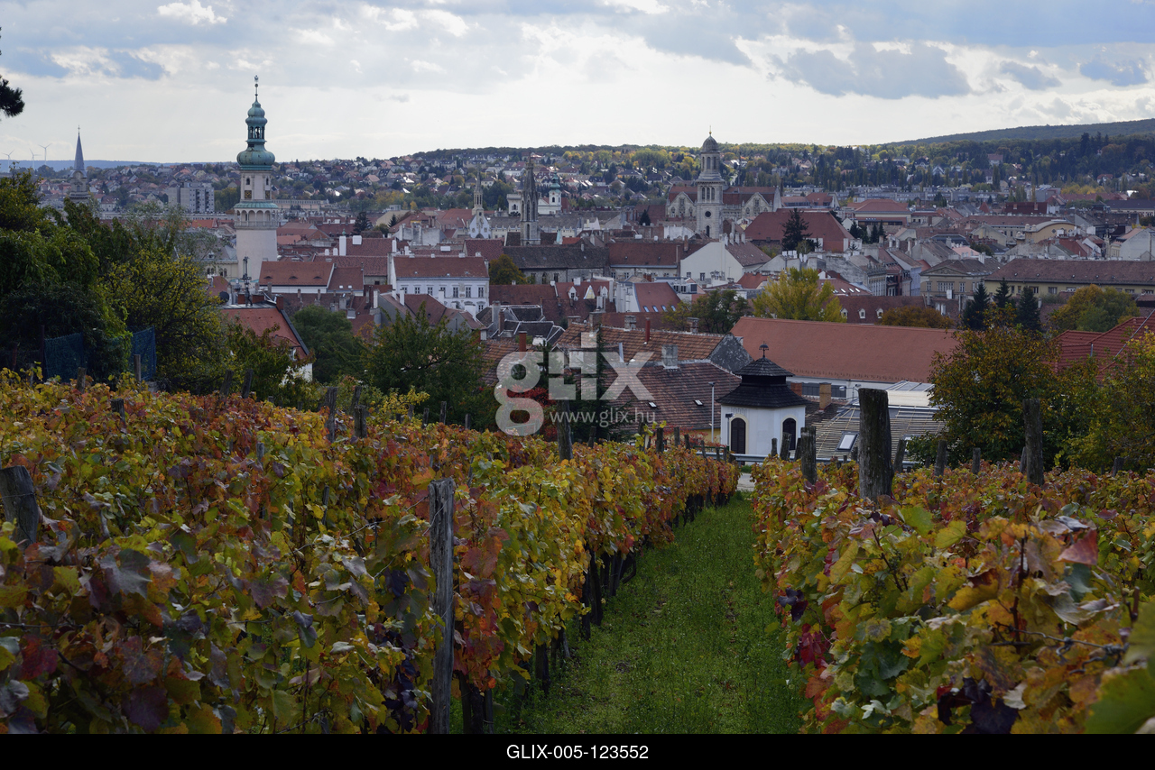 Soproni szőlőtőkék a Koronázódombon. Háttérben a belváros.