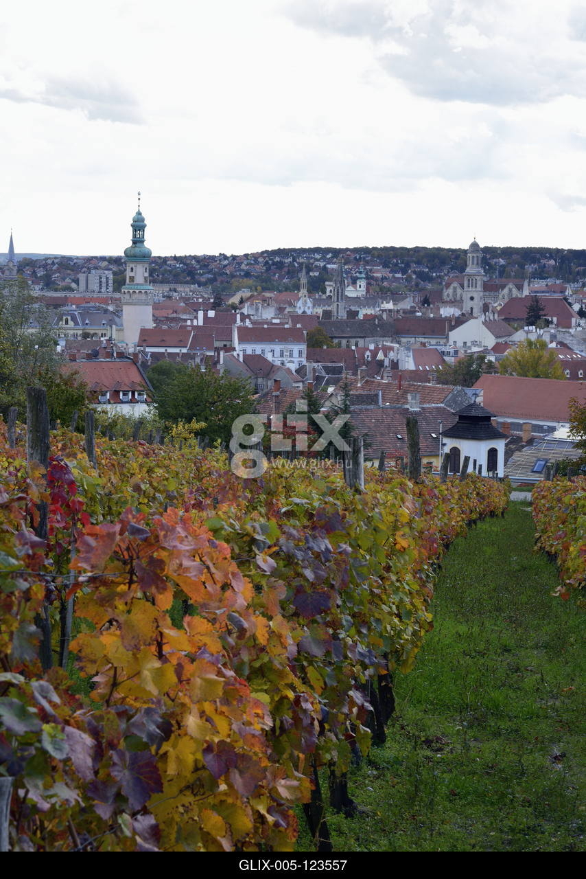 Soproni szőlőtőkék a Koronázódombon. Háttérben a belváros.