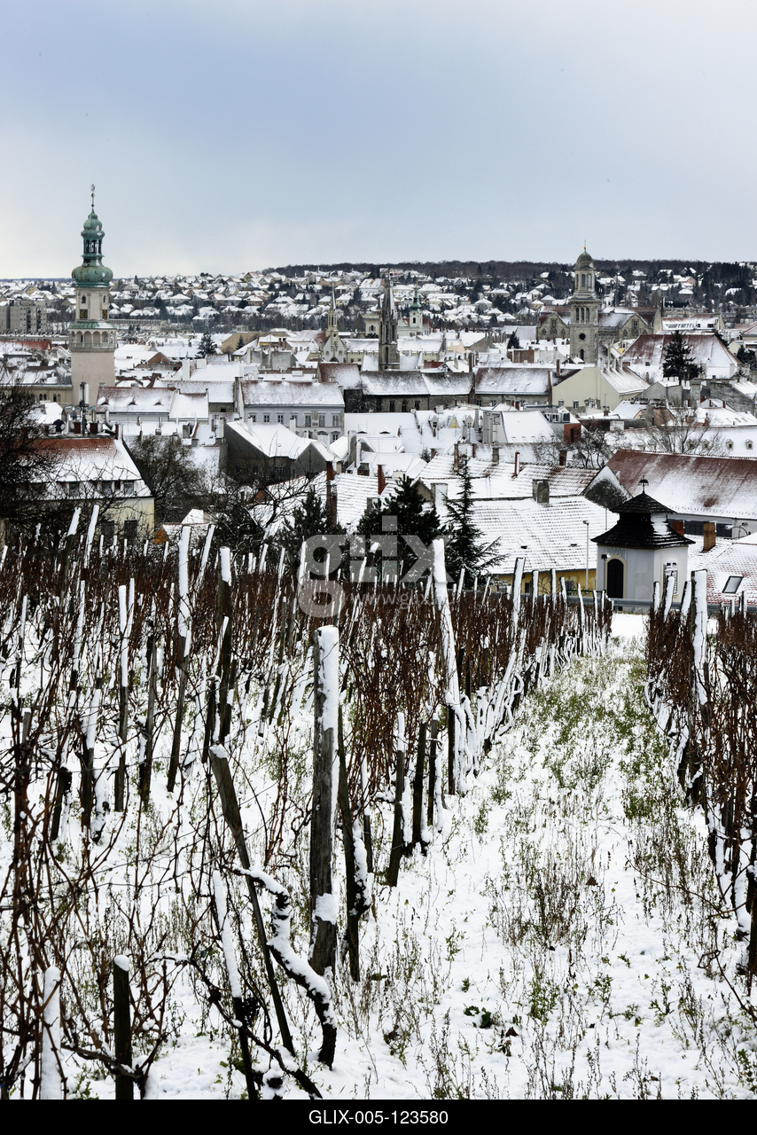 Soproni szőlőtőkék a Koronázódombon. Háttérben a belváros.