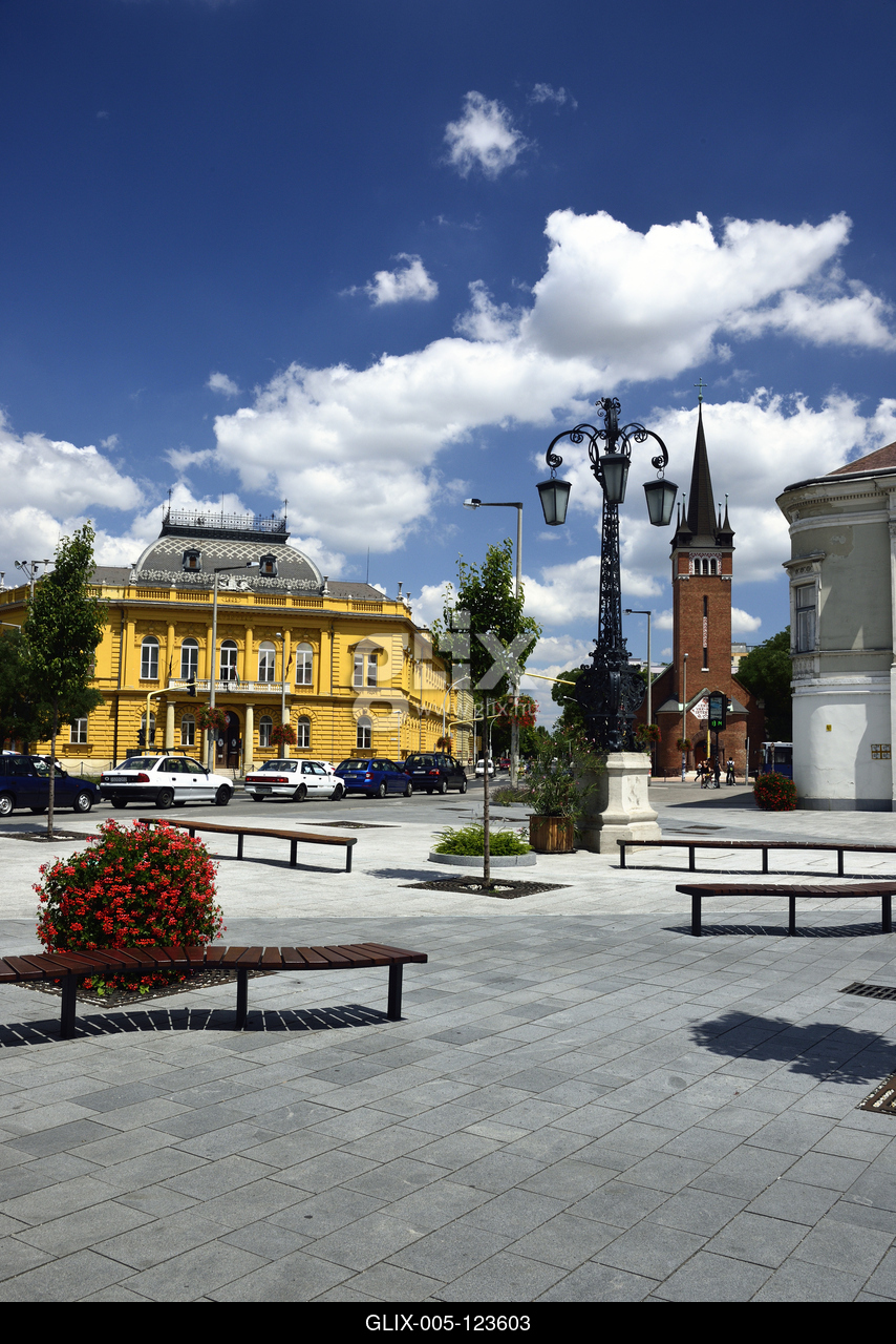 A Fő utca. Háttérben az 1902-ben épült Törvényház és az evangélikus templom.