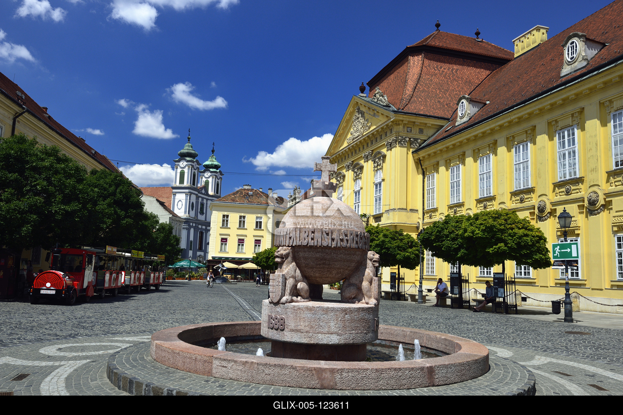 Az Országalma a Városház téren, háttérben az empire és copf stílusban épült püspöki palota (jobbra).