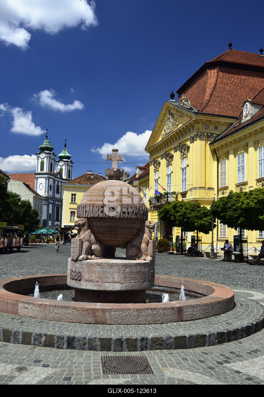 Az Országalma a Városház téren, háttérben az empire és copf stílusban épült püspöki palota (jobbra).