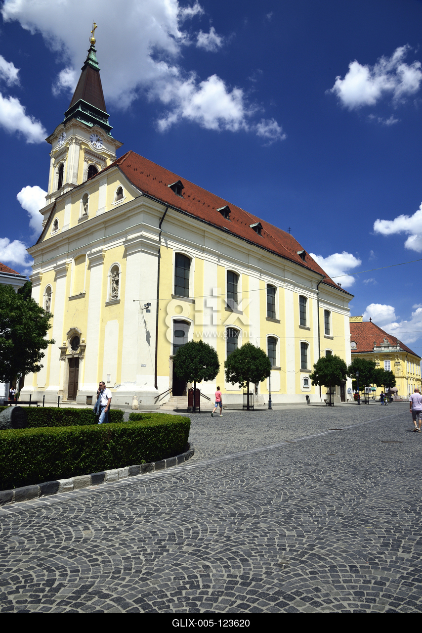A barokk Szent Imre-templom a Városház téren.