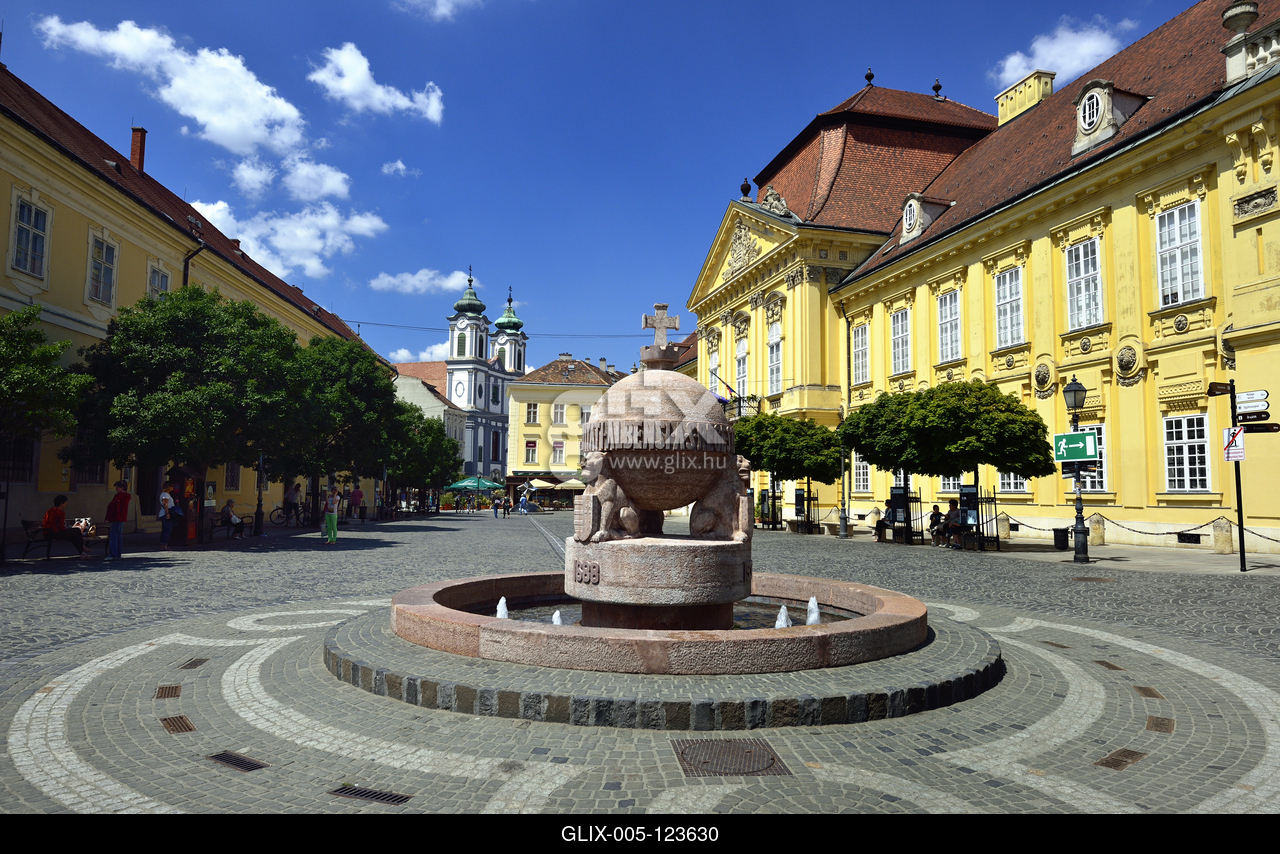 Az Országalma a Városház téren, háttérben az empire és copf stílusban épült püspöki palota (jobbra).