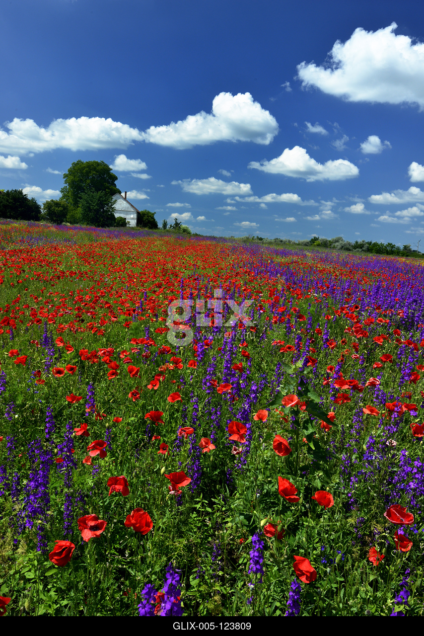 Vadvirágos mező és egy tanya az Alföldön, Szatymaz határában.