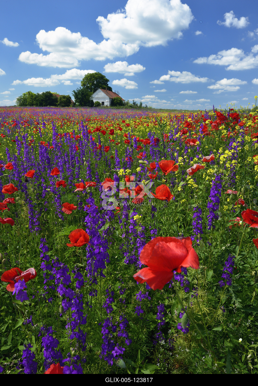 Vadvirágos mező és egy tanya az Alföldön, Szatymaz határában.