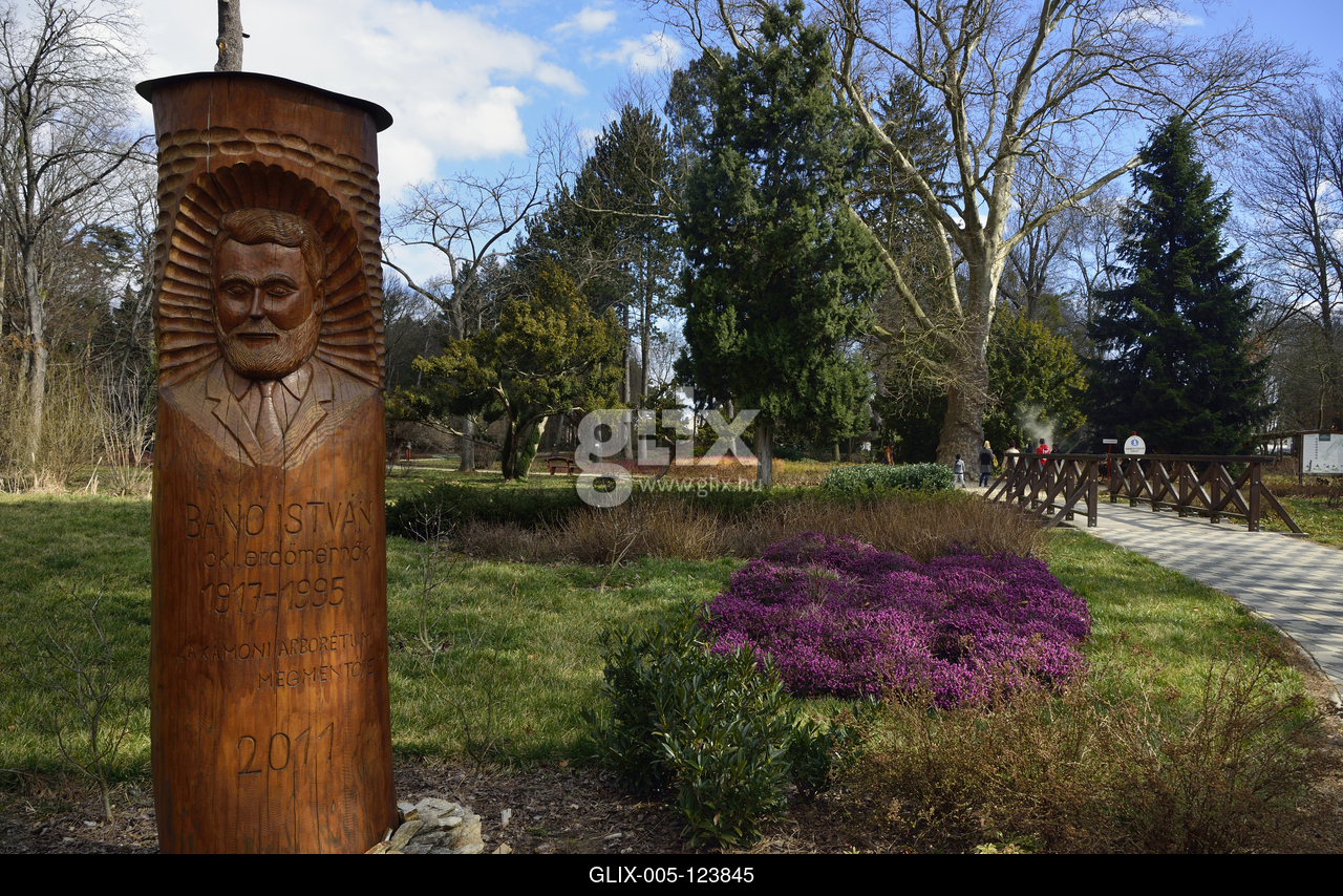 Bánó István erdőmérnök szobra a Kámoni Arborétumban.