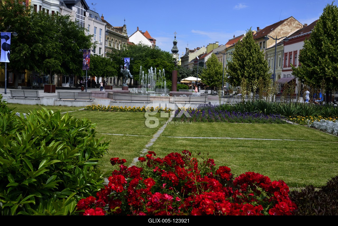 A város szökőkútja a Faunok szoborcsoporttal a barokk Fő téren.