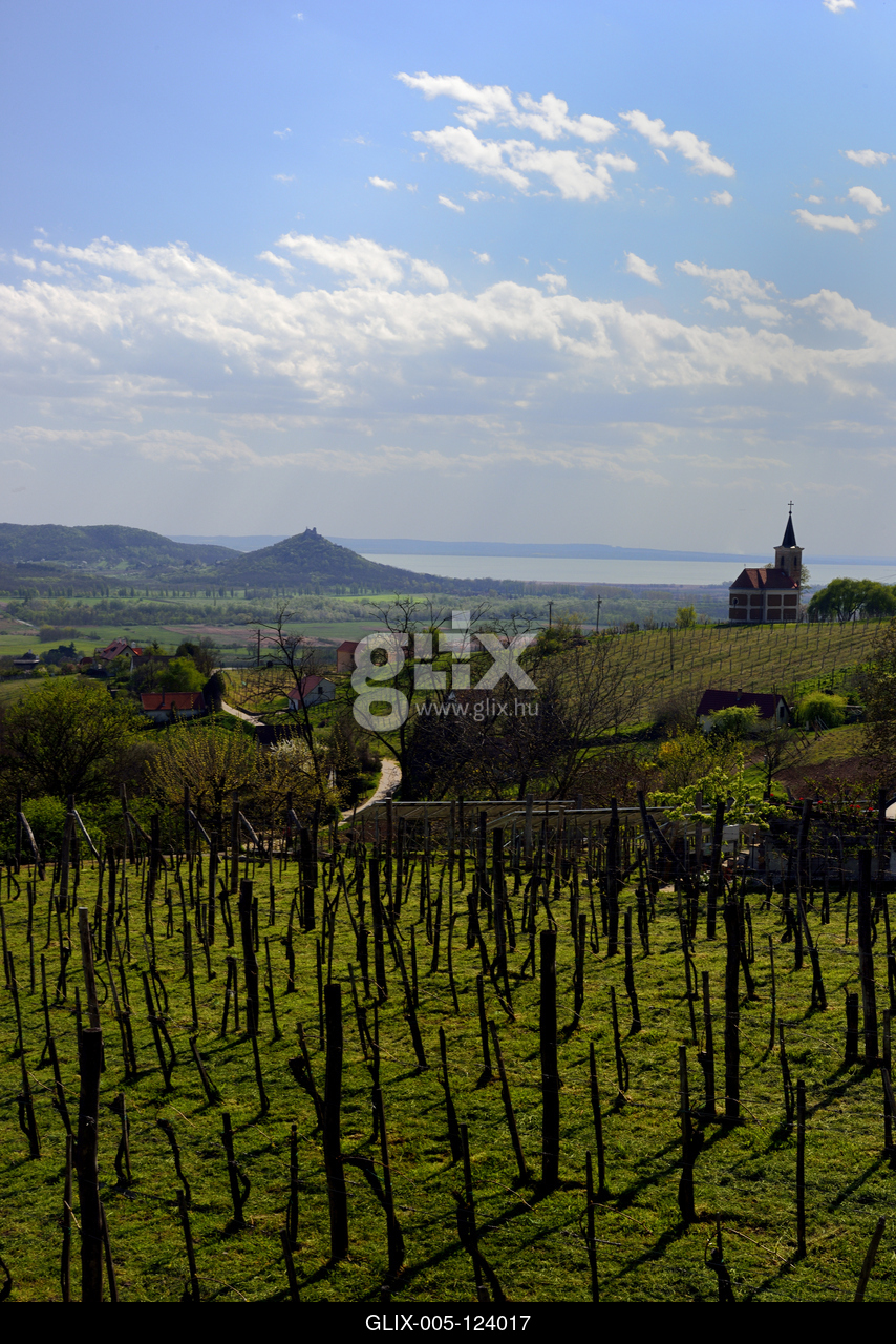A Lengyel-kápolna a Szent György hegyren. Háttérben a Szigligeti vár és a Balaton.