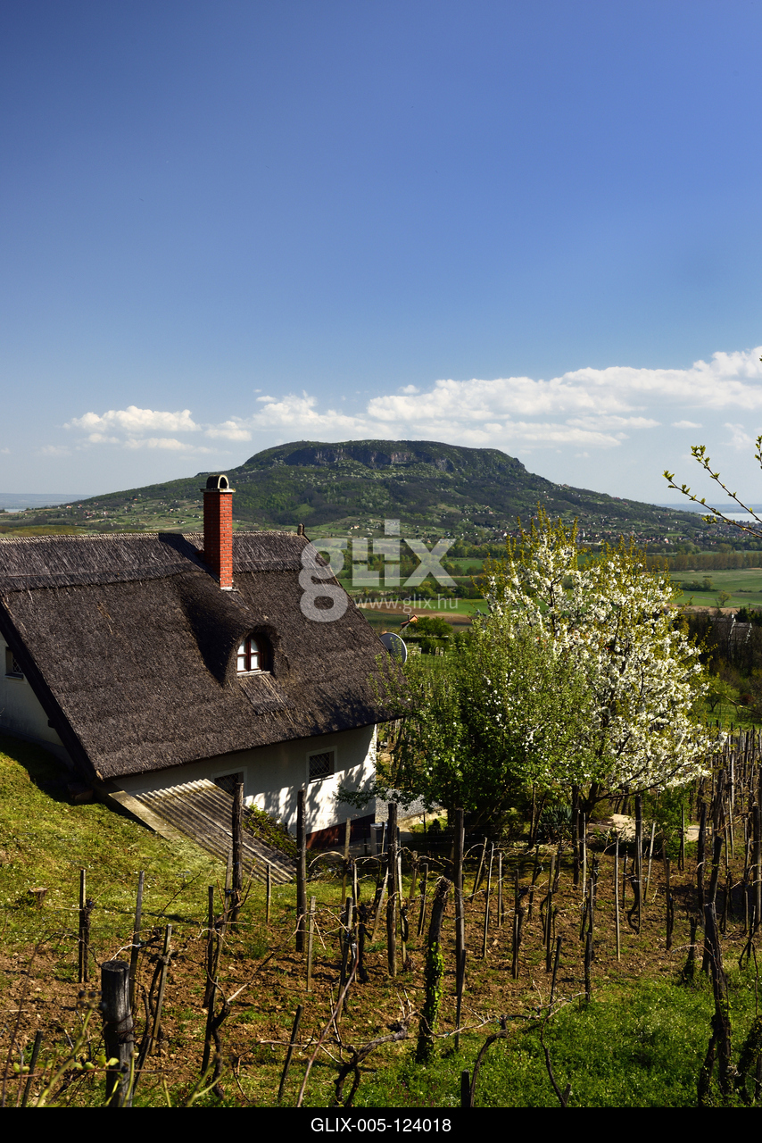 Présház a Szent György hegyren, háttérben a Badacsony.