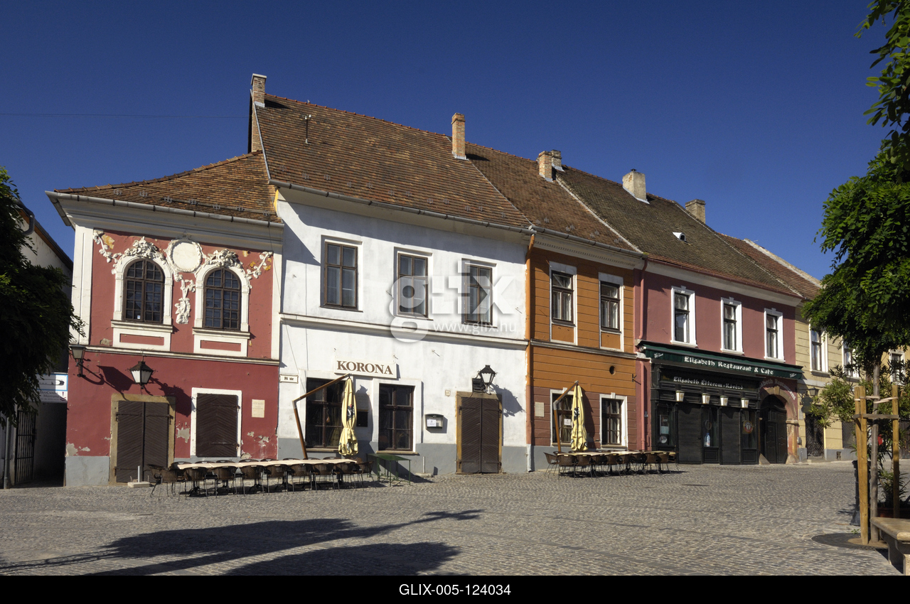 A műemlék barokk, illetve copf stílusú házakkal szegélyezett Fő tér.