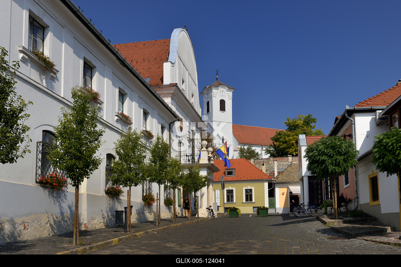 A Városháza tér és a Városháza. Háttérben a vártemplom tornya.