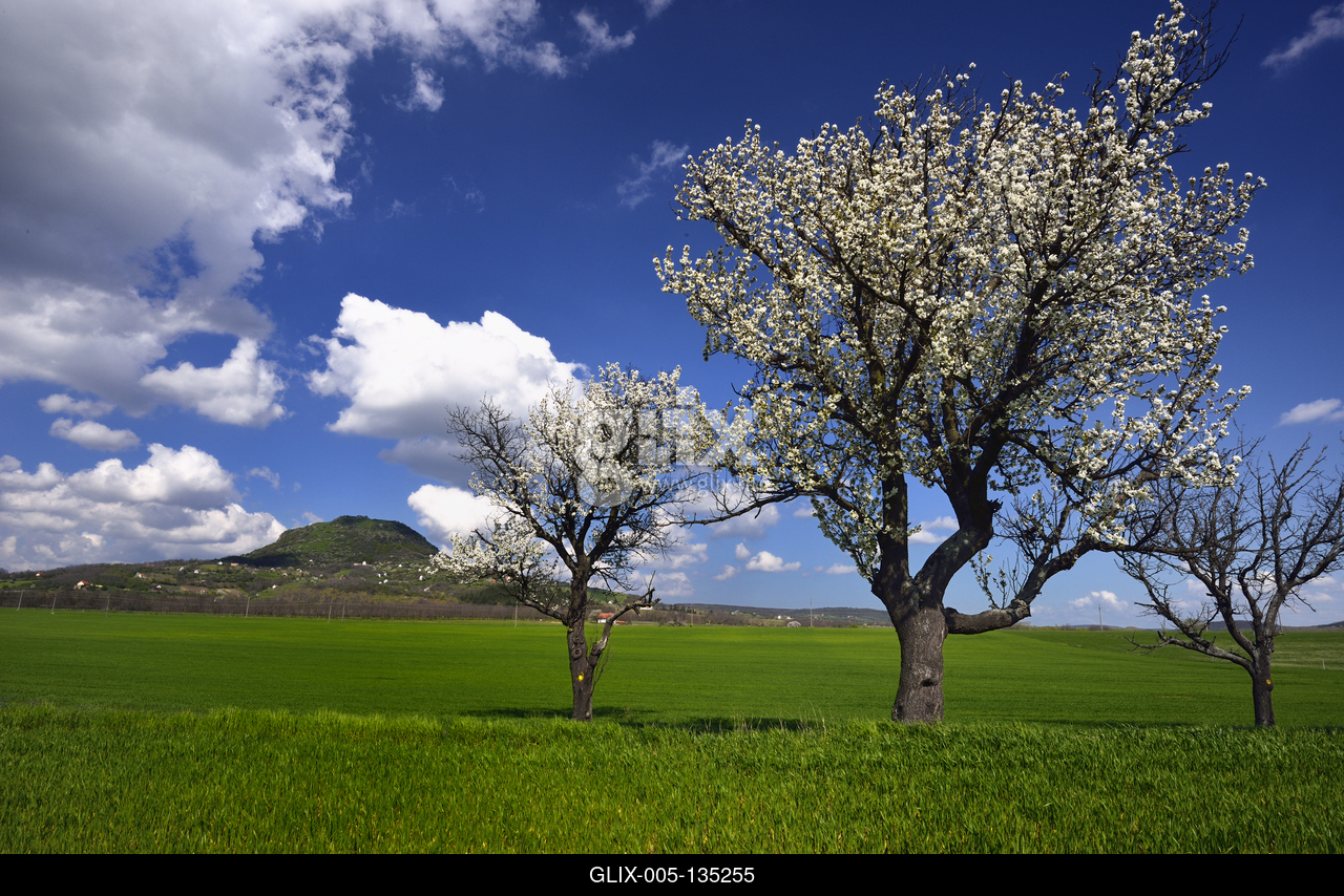 Balatonfelvidéki táj , Balaton-felvidéki táj a Tapolcai-medencében. Háttérben a Csobánc.