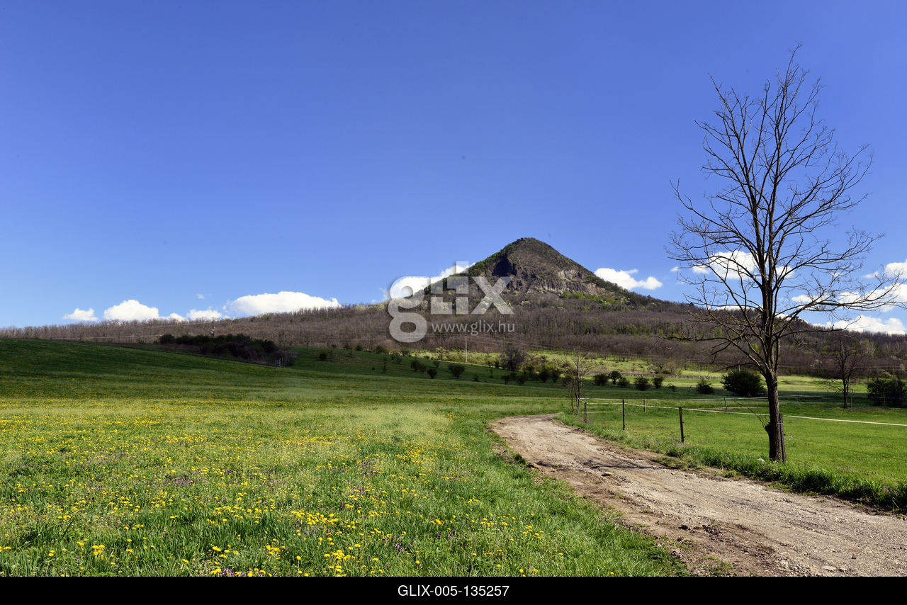 Balaton-felvidéki táj a Tapolcai-medencében. Háttérben a Gulács.
