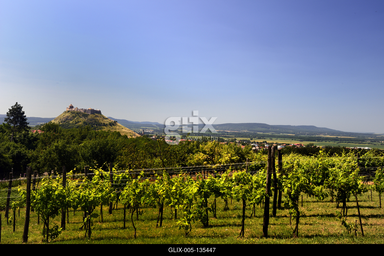 Szőlőültetvény Sümeg határában. Háttérben a sümegi vár.