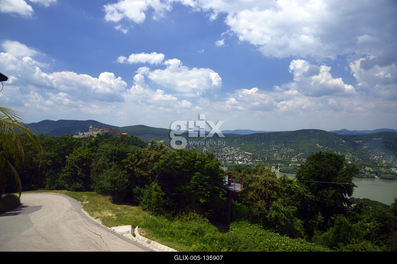 A Dunakanyar és a Fellegvár látképe a visegrádi Nagyvillám Étteremtől.