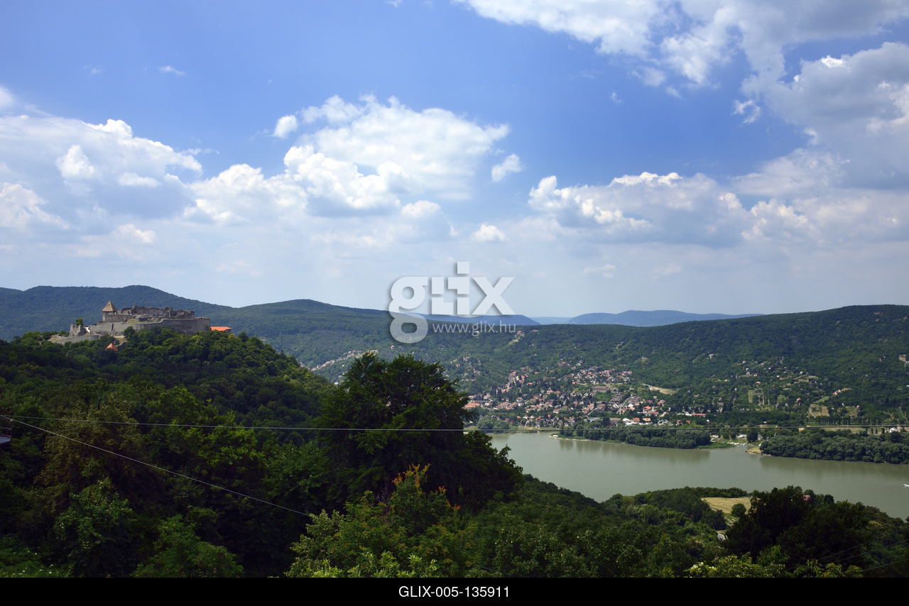 A Dunakanyar és a Fellegvár látképe a visegrádi Nagyvillám Étteremtől.