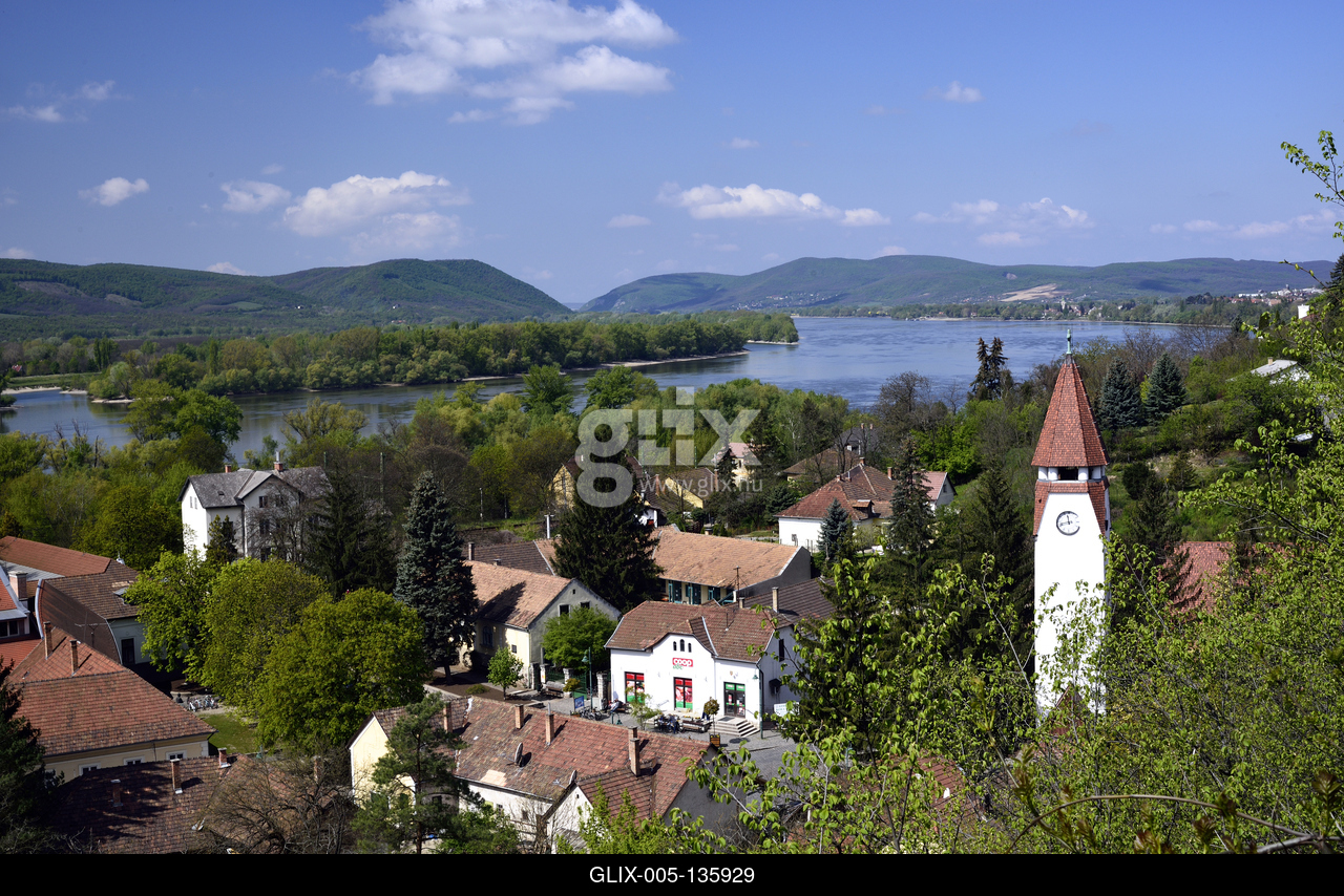 A Dunakanyar és Zebegény látképe a falu fölé magasodó Kálváriahegyről.