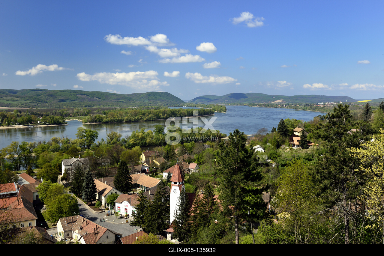 A Dunakanyar és Zebegény látképe a falu fölé magasodó Kálváriahegyről.