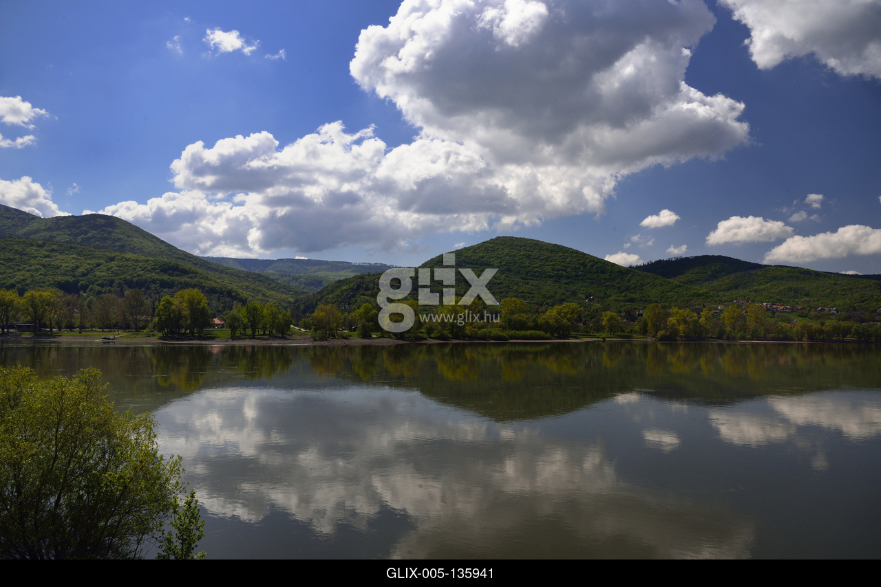 Dunai tájkép Zebegényből fotózva, szemben a Pilis hegyvonulatai.