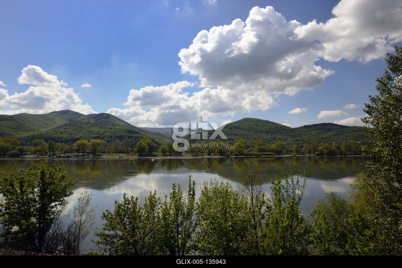 Dunai tájkép Zebegényből fotózva, szemben a Pilis hegyvonulatai.