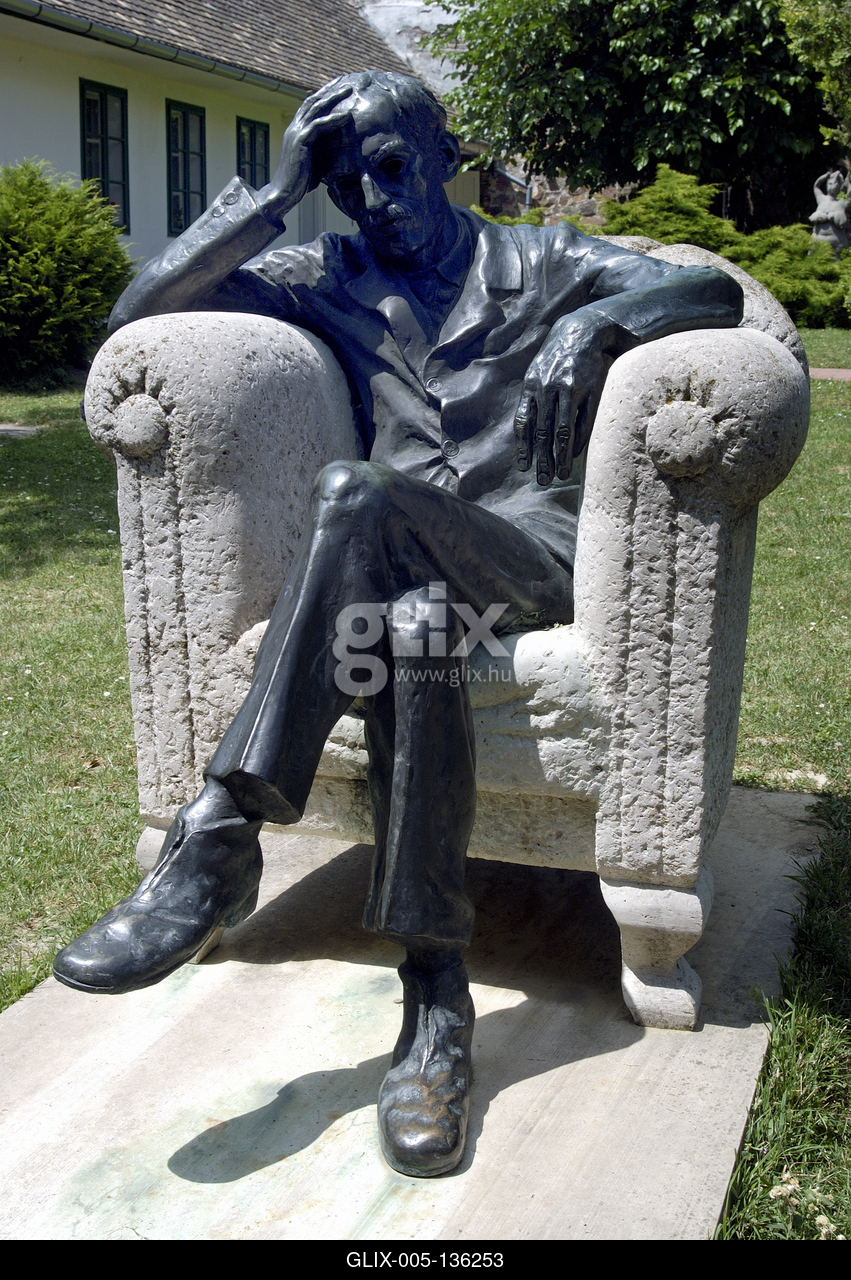 Szekszárd, Babits Mihály szobra a szülőházból kialakított múzeum udvarán. A szobrász a hajdani árnyékos lugasba helyezte a kőfotelt, mely hű mása az emlékházban lévő bőrfotelnek. Ott áll, ahol Babits a legszívesebben üldögélt, ahol híres költeményeit írta.