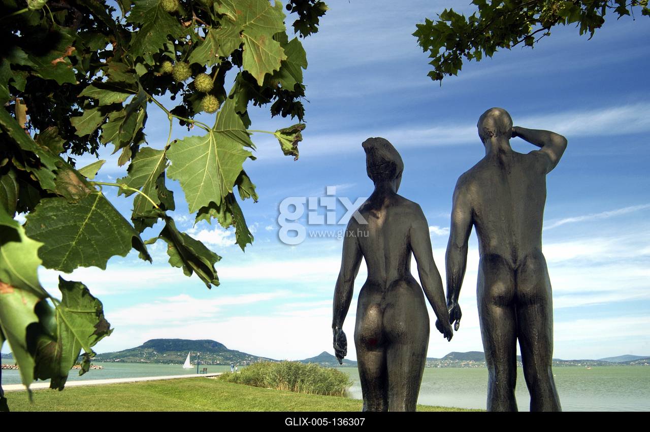 Fonyód, az Emberpár című szobor a Balaton partján.