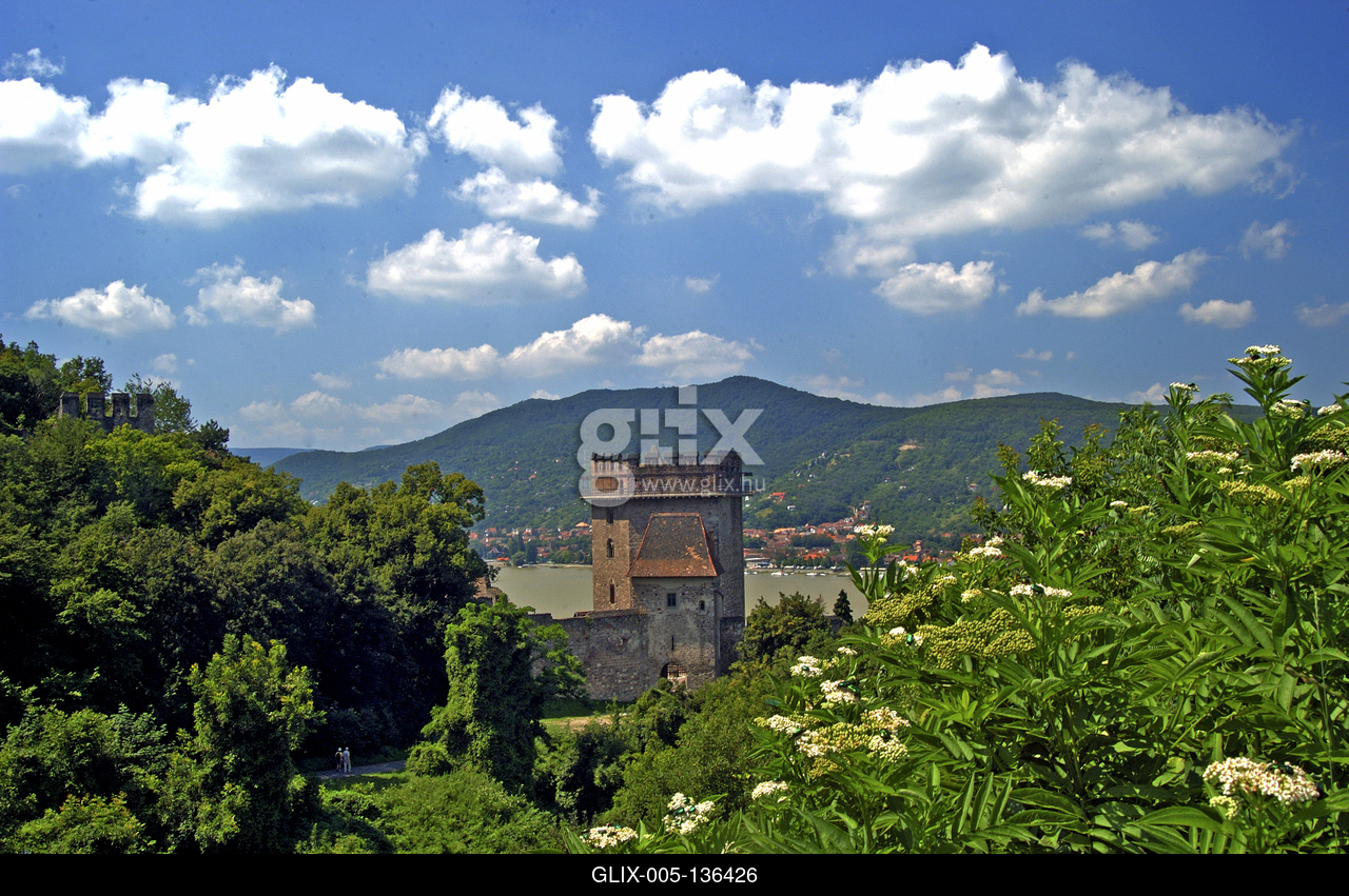 Visegrád, Alsóvár (Salamon-torony). Az alsóvár lakótornya, az ún. Salamon-torony a korszak magyarországi építészetében szinte egyedülálló épület. XIII. századi főbejárata az első emeletről nyílott, innen vezetett az emeletre a déli falsarkba beépített lépcsőház. Az emeleti termeket oszlopos kandallók fűt ötték, és gazdagon tagozott ikerablakok világították meg. A hatodik szinten helyezkedett el a gyilokjárós, pártázatos falakkal övezett tetőterasz, ahonnan a külső, fából épült erkélyfolyosóra lehetett kilépni.