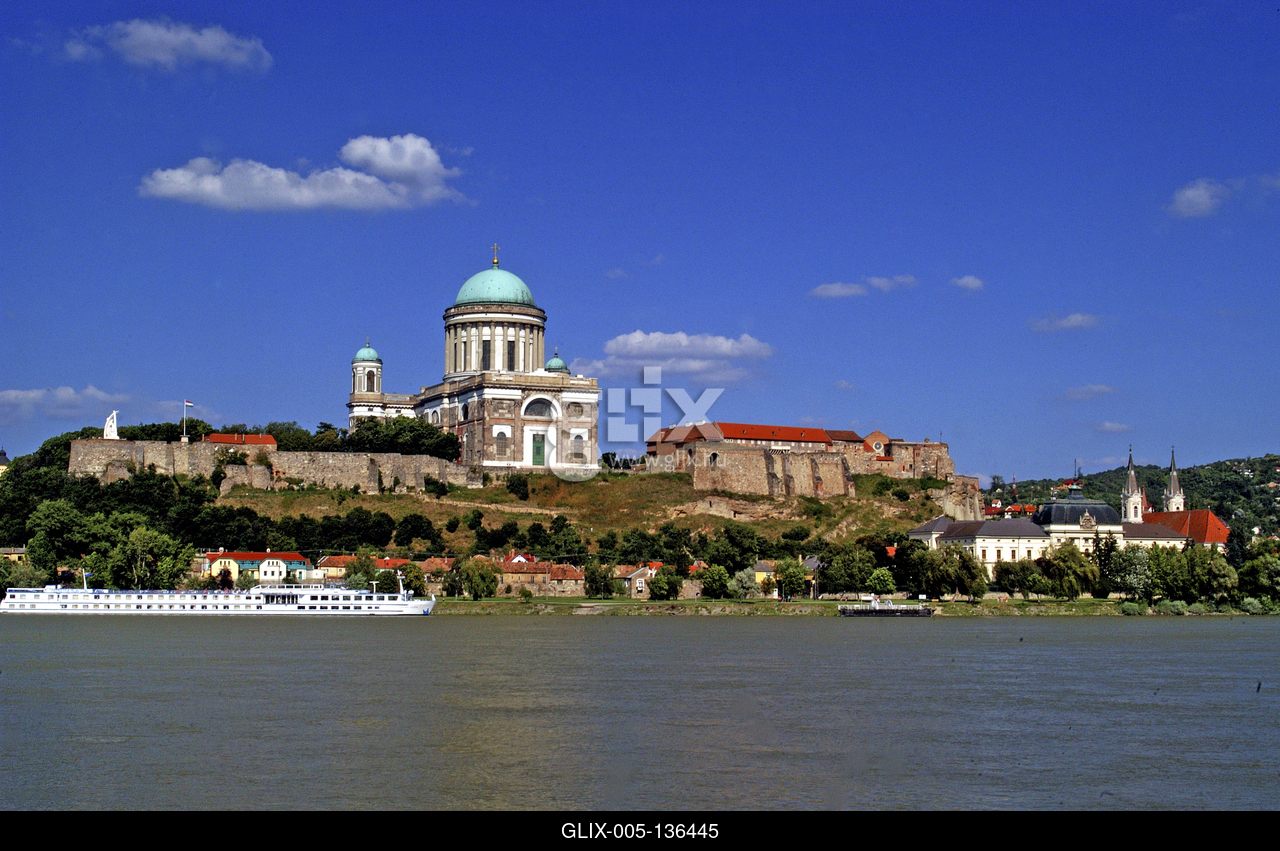 Az Esztergomi bazilika és a vár látképe a Dunával