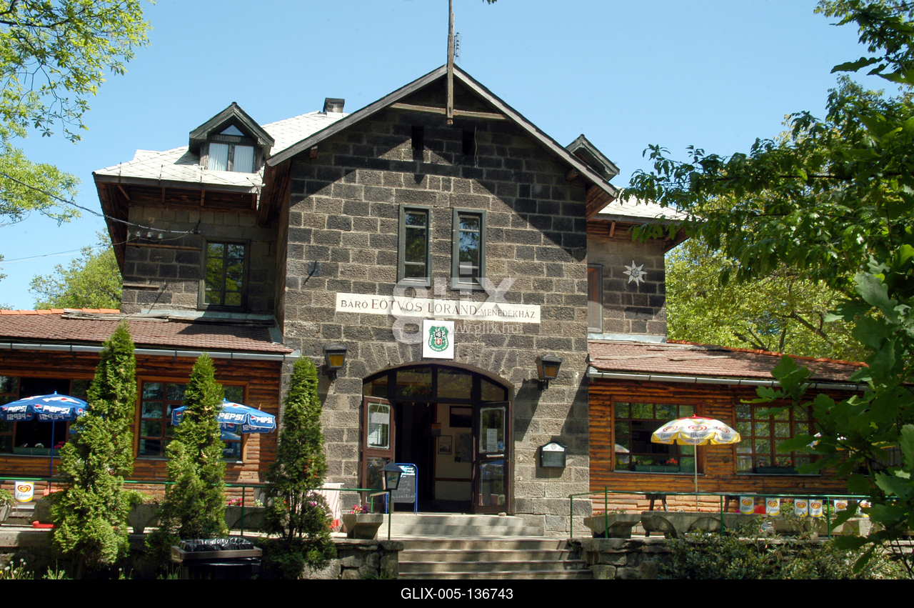Dobogókő, Báró Eötvös Loránd menedékház. A Pilis kedvelt kirándulóhelyén Eötvös Loránd (1848-1919) fizikus, kultúrpolitikus kezdeményezésére a XIX. század második felében épült fel - részben kőből és fából - a menedékház. A műemlékké nyilvánított épületben (képünkön) helyreállítása után 1985-ben megalapították a Turistamúzeumot, amely bemutatja a magyar természetjárás történetét és egyes szakágait.