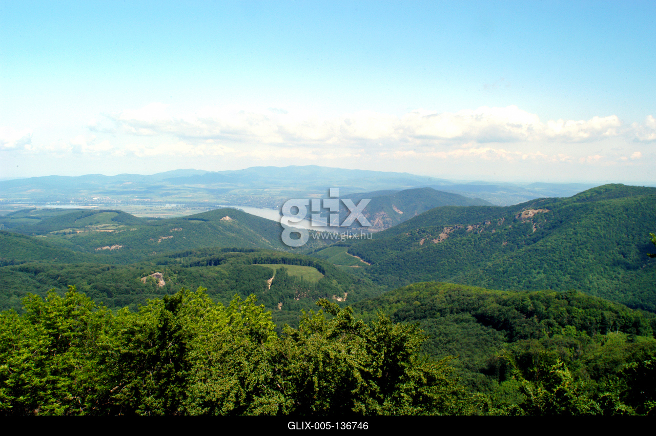 A Visegrádi hegység és a Dunakanyar látványa Dobogókőről. Dobogókő a Visegrádi-hegység legmagasabb pontja (699 m) a környék legismertebb turistaközpontja szállodákkal, üdülőkkel, közigazgatásilag Pilisszentkereszt része.