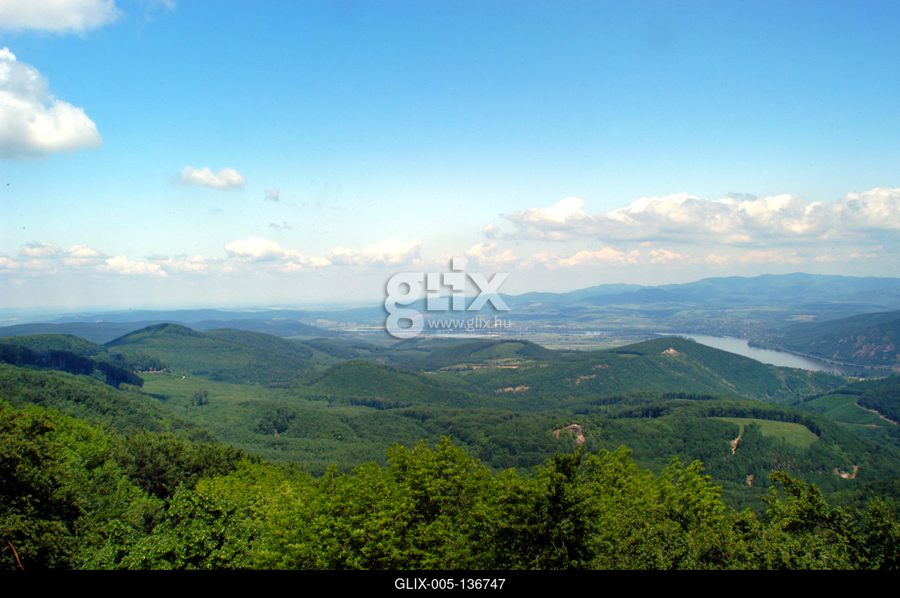 A Visegrádi hegység és a Dunakanyar látványa Dobogókőről. Dobogókő a Visegrádi-hegység legmagasabb pontja (699 m) a környék legismertebb turistaközpontja szállodákkal, üdülőkkel, közigazgatásilag Pilisszentkereszt része.