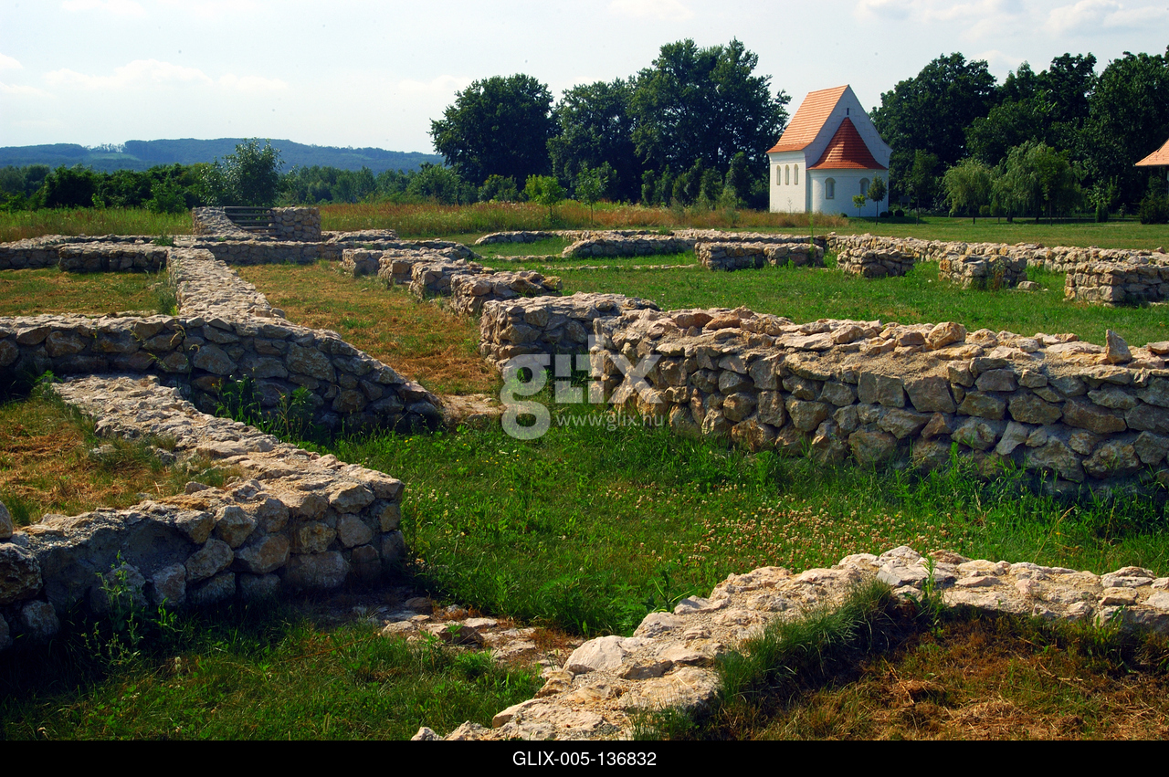 Zalavár, a Szent István kápolna a Történelmi Emlékparkban. Az Árpád-kori templom alapfalai fölé 1996-ban emeltette Zala megye közgyűlése a Szent István király tiszteletére szentelt kápolnát.
