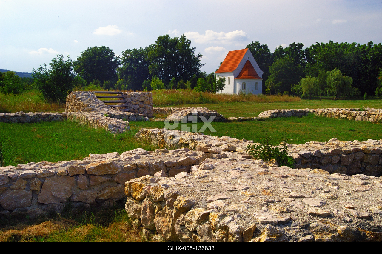 Zalavár, a Szent István kápolna a Történelmi Emlékparkban. Az Árpád-kori templom alapfalai fölé 1996-ban emeltette Zala megye közgyűlése a Szent István király tiszteletére szentelt kápolnát.