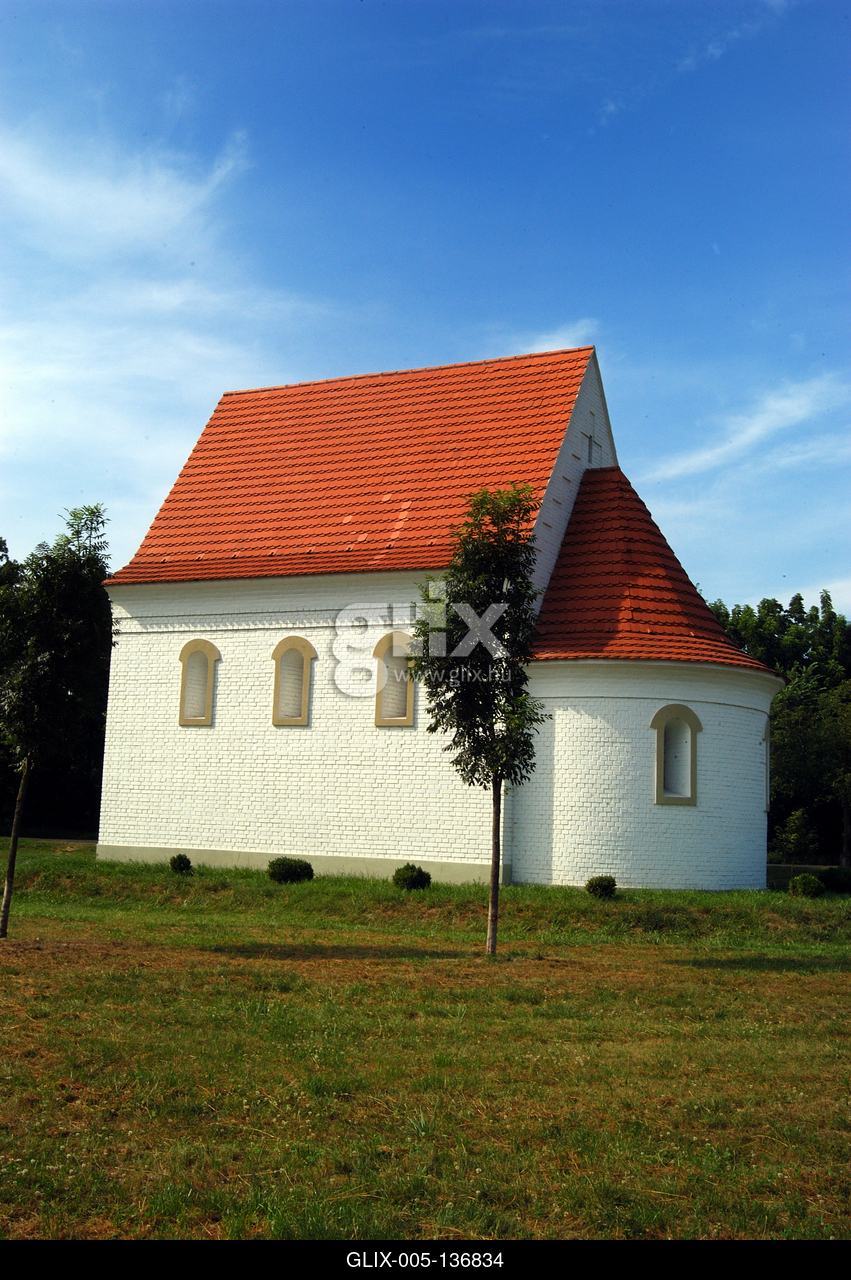 Zalavár, a Szent István kápolna a Történelmi Emlékparkban. Az Árpád-kori templom alapfalai fölé 1996-ban emeltette Zala megye közgyűlése a Szent István király tiszteletére szentelt kápolnát.