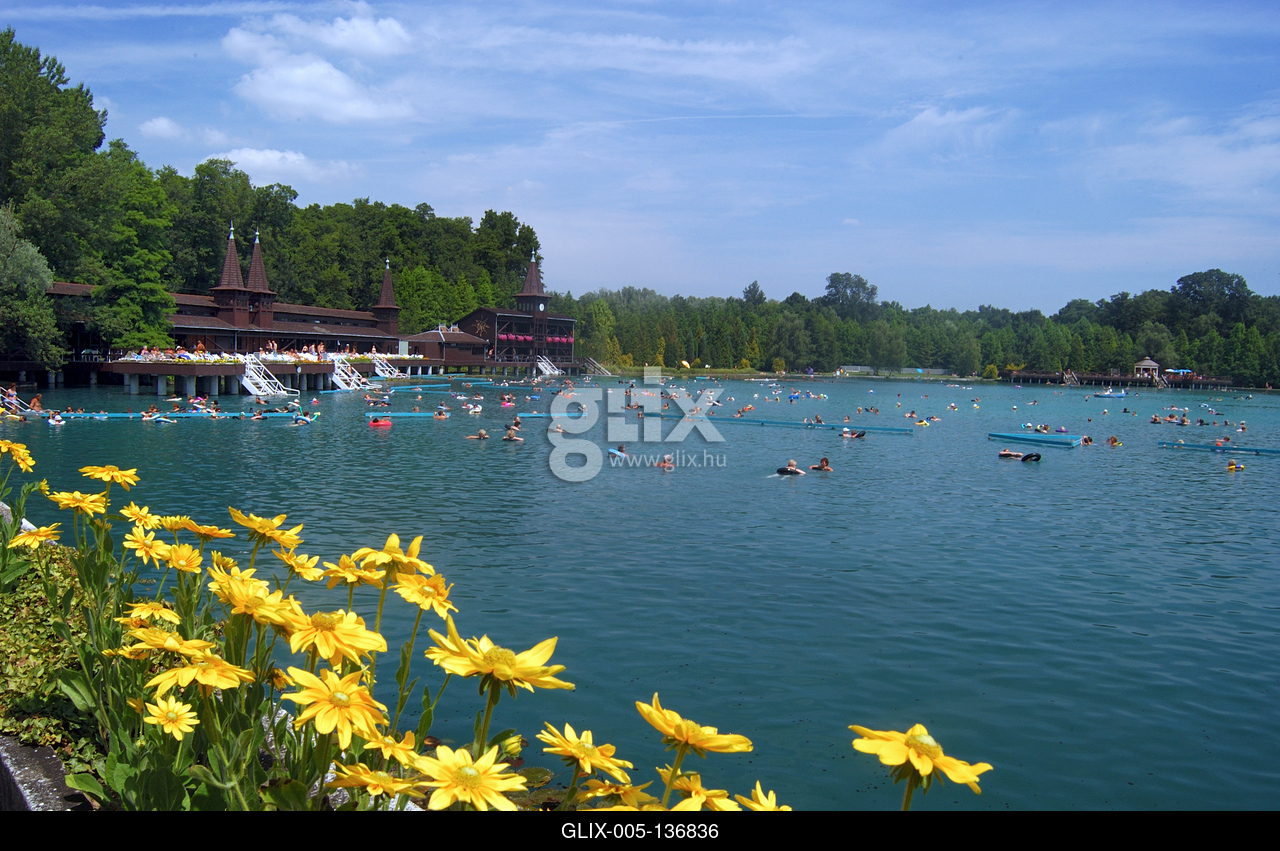 Hévízi Tófürdő. Az első tutajokra épített fürdőházat 1772-ben Festetics György, a keszthelyi Georgikon alapítója építtette. A több ezer éves tőzegfenekű gyógytavat egy 38 m mélyen fekvő forrásbarlang több, ásványi anyagokban gazdag, hideg és a meleg vizű forrásai táplálják.