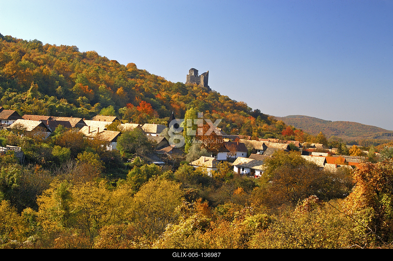Hollókő, az Ófalu védett falurész ősszel. A Világörökség részét képező hollókői Ófalu védett népi építészeti együttese hitelesen idézi fel a 20. század eleji palóc település képét. Központjában, a templommal átellenben álló egykori lakóház 1964 óta múzeum. Az 1867-ben már álló korábbi lakóház maradványainak felhasználásával, a falu nagy részét elpusztító 1909-es tűzvészt követően épült fel mai formájában.