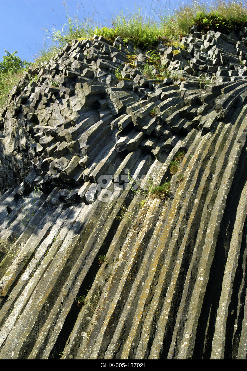Bazaltorgonák a Somoskői vár északi (szlovákiai) oldalán. A csaknem 500 méter magasságból kihajló, mintegy 16 méter hosszú oszlopok orgonasíp módjára helyezkednek el. A hegy gyomrából kiömlő láva bazalt íves-oszlopos formában szilárdult meg.
