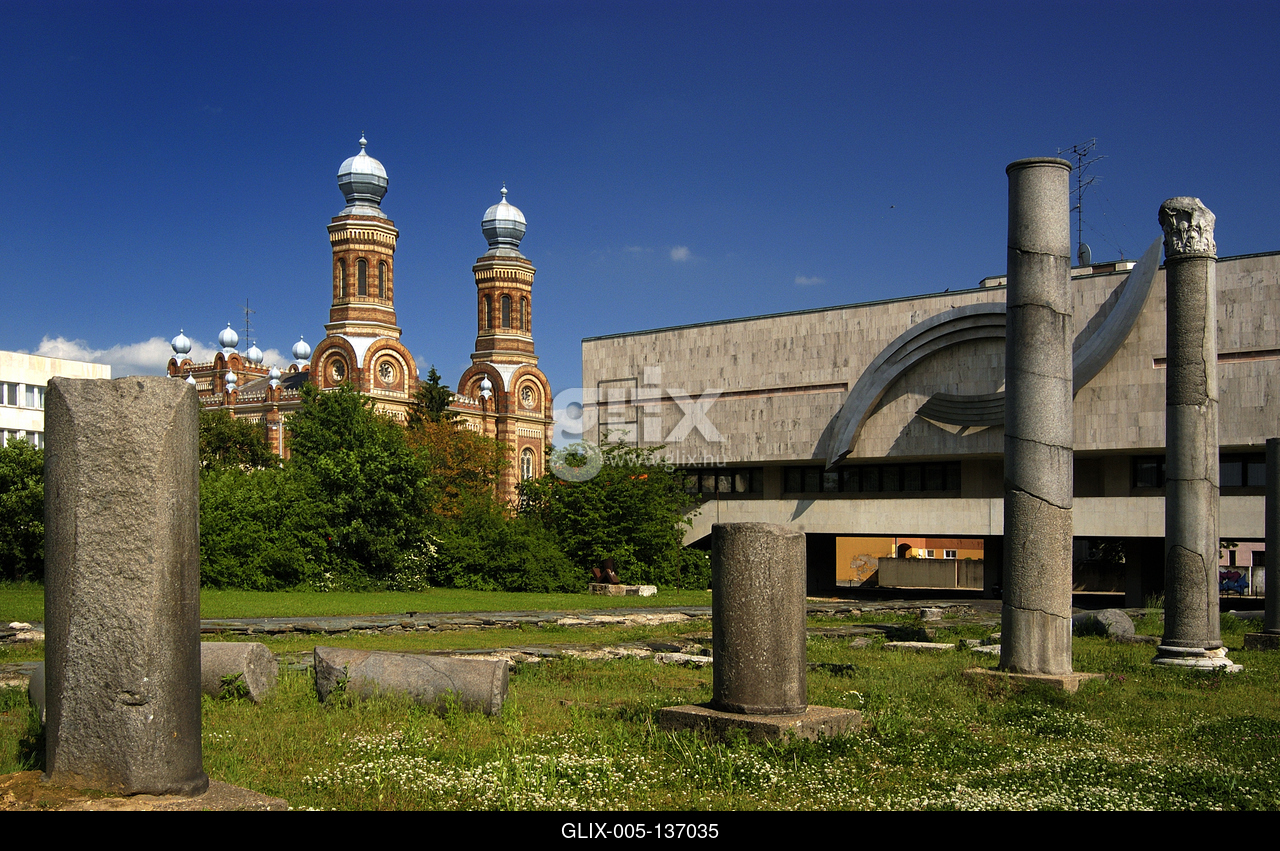 Szombathely, Iseum, háttérben a Zsinagóga