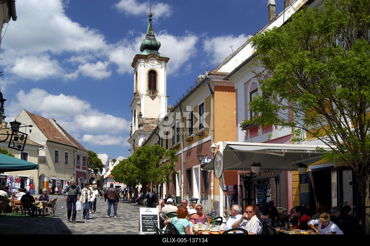 Szentendre, Fő tér. A Fő tér színpompás barokk, rokokó és copf stílusú házai megőrizték a régi kereskedőházak arányát. Építtetőik, a török elől Szentendrére menekült szerb és görög kereskedők, magukkal hozták mediterrán világukat, melynek hangulatát beleépítettek a házak köveibe.