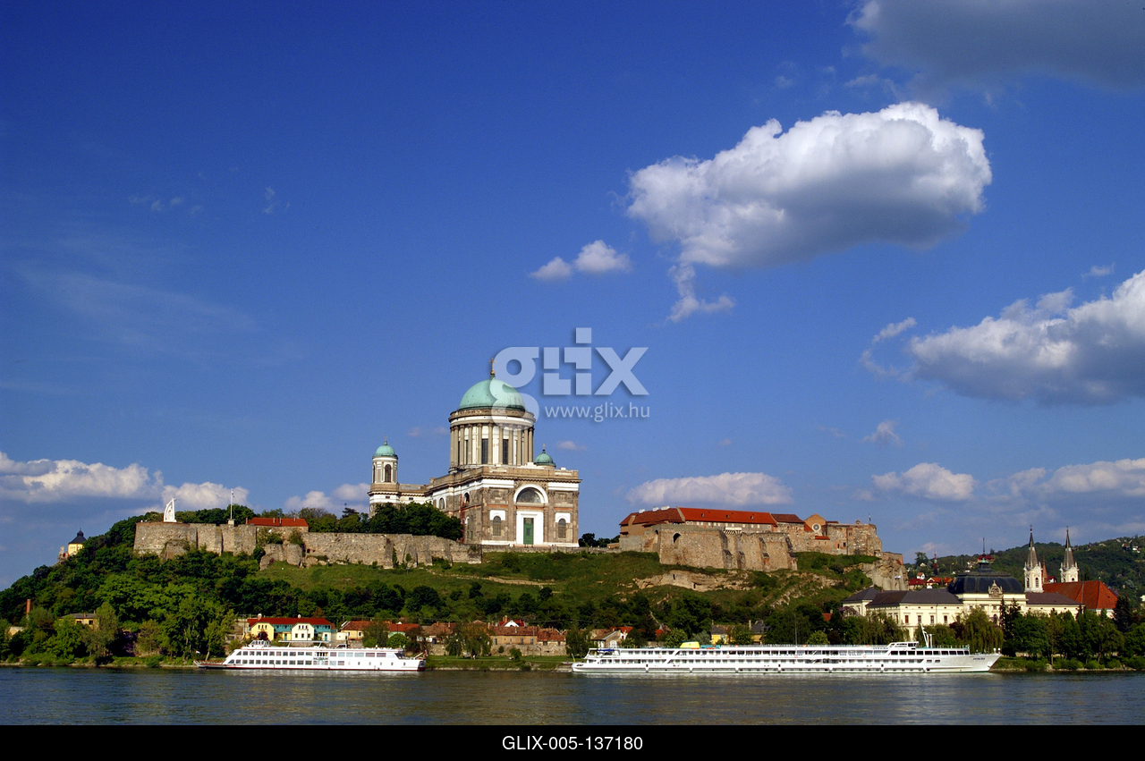 Az Esztergomi bazilika és a vár látképe a Dunával