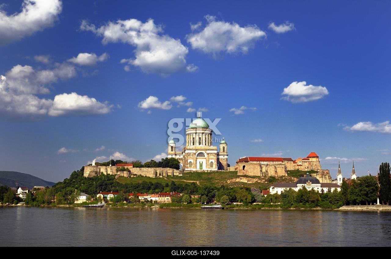 Az Esztergomi bazilika és a vár látképe a Dunával