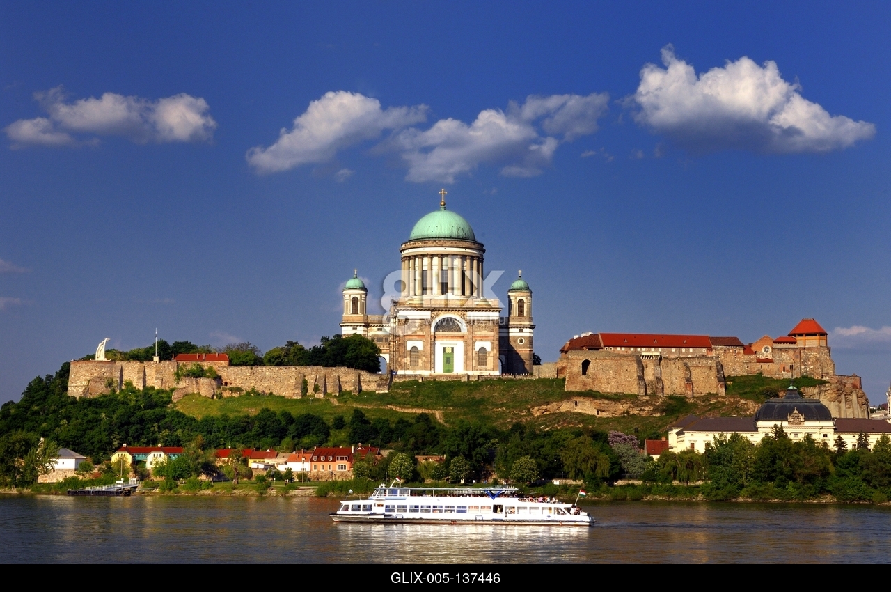 Az Esztergomi bazilika és a vár látképe a Dunával